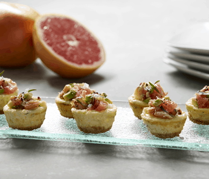 Savory Cheesecake Bites with Crab, Grapefruit and Avocado https://www.sunkist.com/recipes/savory-cheesecake-bites-with-crab-grapefruit-and-avocado/ Labels: Appetizer, Grapefruit, Lemons, Party, Snack